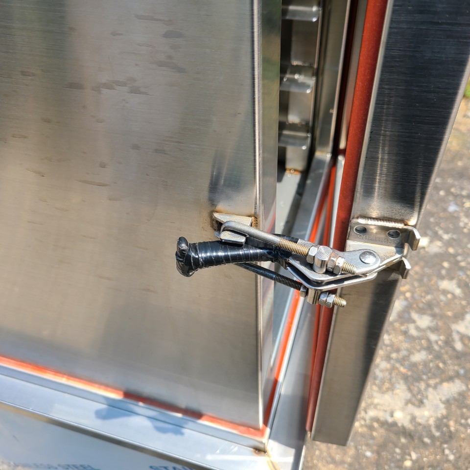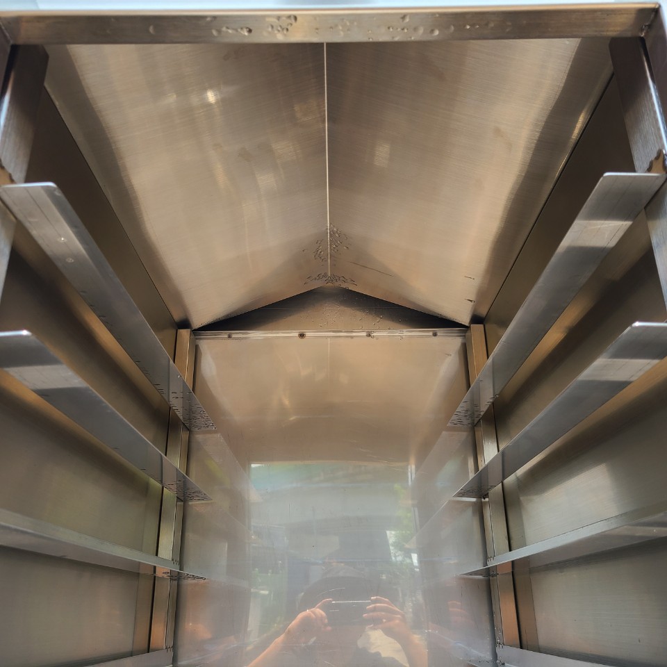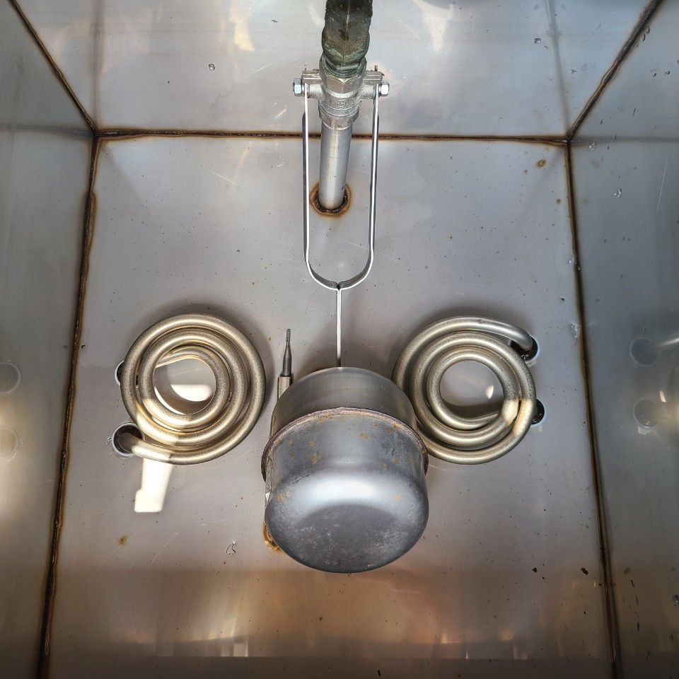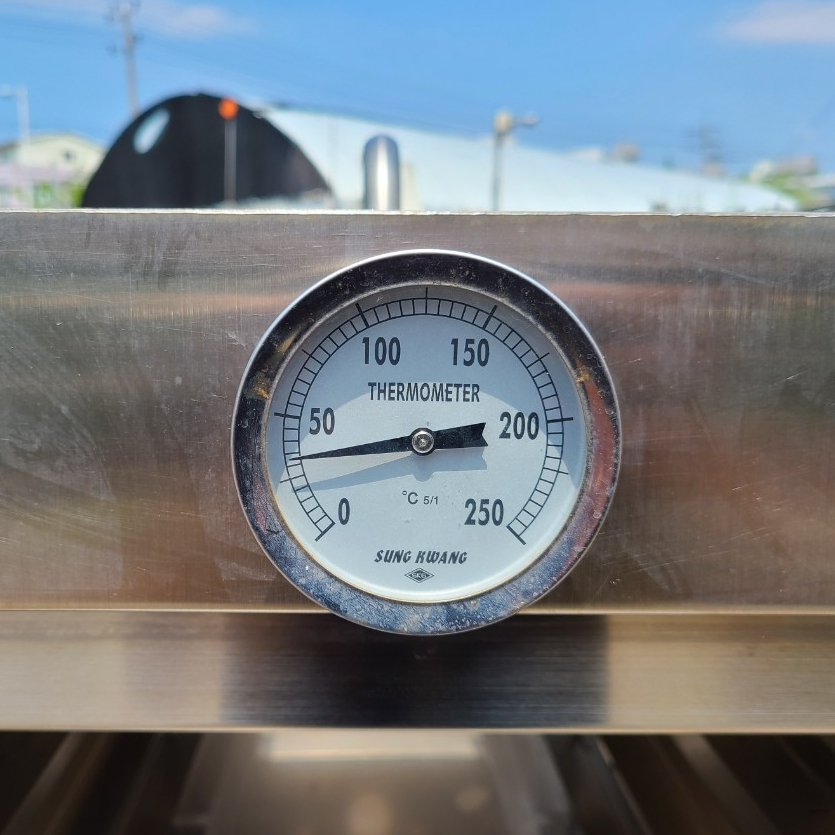 바깥쪽에서 안쪽이 보여요. Detail 찜기 안쪽 상부의 모습입니다.뜨거운 스팀이 바로 올라오지 않고 한번 더 음식에 열을 가한 후 빠지도록 설계되었습니다.(빠른 조리속도, 전기비용 절감) 찜기 상단에 설치된 아날로그 온도계입니다.최대 250도까지 온도 표시가 가능하지만 뜨거운 물을 데우는 찜통이므로 최대 100도를 넘지 않고 80~90도 사이를 유지하는 것이 좋습니다. 내열 실리콘 마감 모습입니다.뜨거운 온도에 강한 재질입니다. 찜통 뒤쪽에 있는 스팀 배출구입니다. 찜기 내부 아래쪽에 있는 히 터트자동차단밸브입니다.가운데 동그란 통 같은 것은! 뒤의 수도를 한번 연결한 후 기계적인 방식으로 물을 스스로 채워 유지시켜 줍니다.※ 스팀히터는 물이 없는 공간에서 열을 발생시키면 고장날 요인이 많습니다. 자동차단밸브는 필수적으로 설치되어 있어야 합니다. 스팀이라 화질이 밝지 않습니다. 실제로 작동하는 영상입니다.