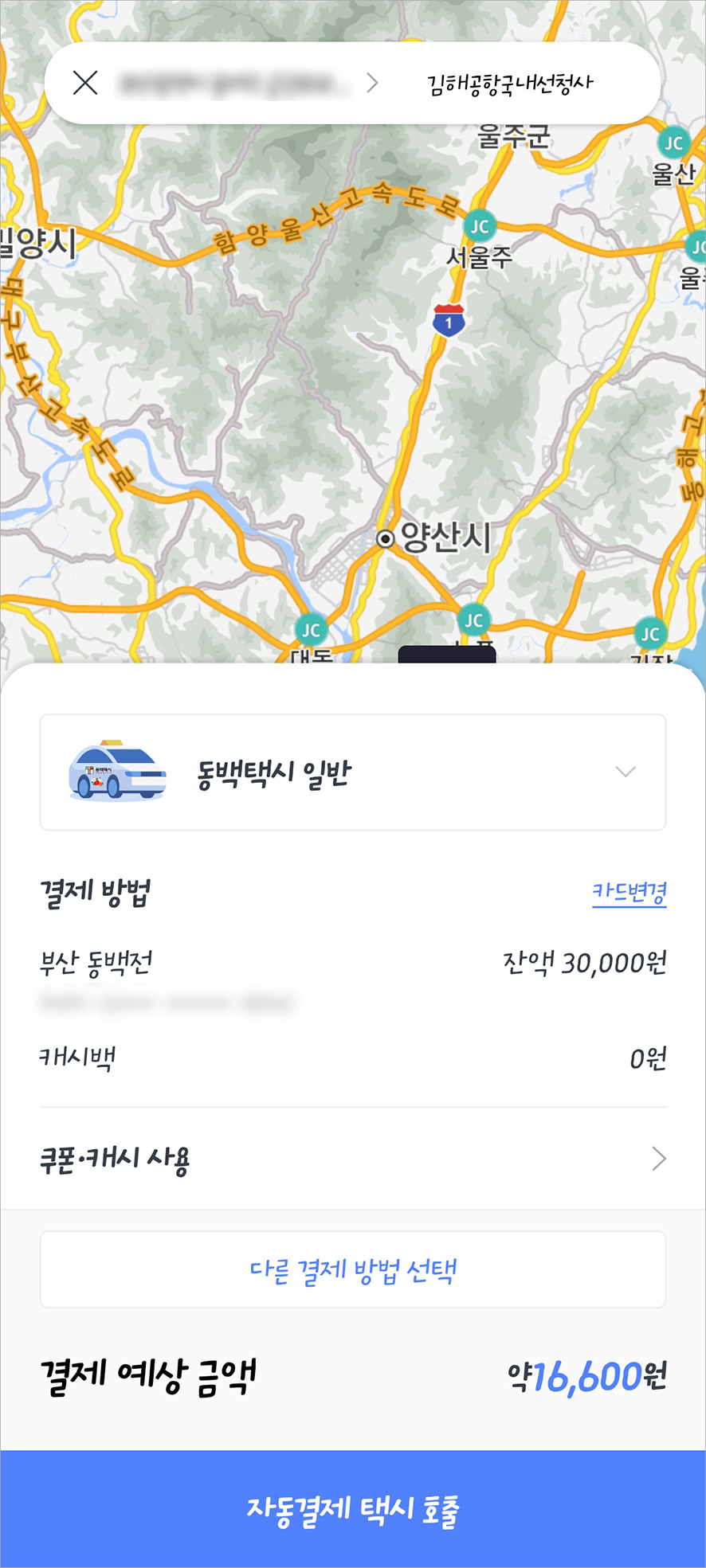 그동안 동백전 어플을 이용하셨던 분들은 별도의 택시 어플을 깔 필요없이 그대로 이용할 수 있어 편리하고 10% 캐시백도 똑같이 받을 수 있어 저 같은 부산 주민들에게는 정말 편리할 것 같습니다.