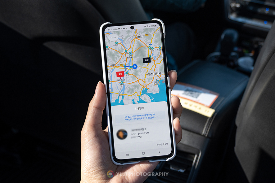 부산 콜택시를 타고 김해공항을 향해 열심히 달리는 중!앱으로 제공하는 GPS도 정확하여 이동경로를 실시간으로 확인할 수 있었고 그중에 기사님까지 정말 친절했던 기억으로 첫 이용경험이 아주 좋았습니다.(웃음)