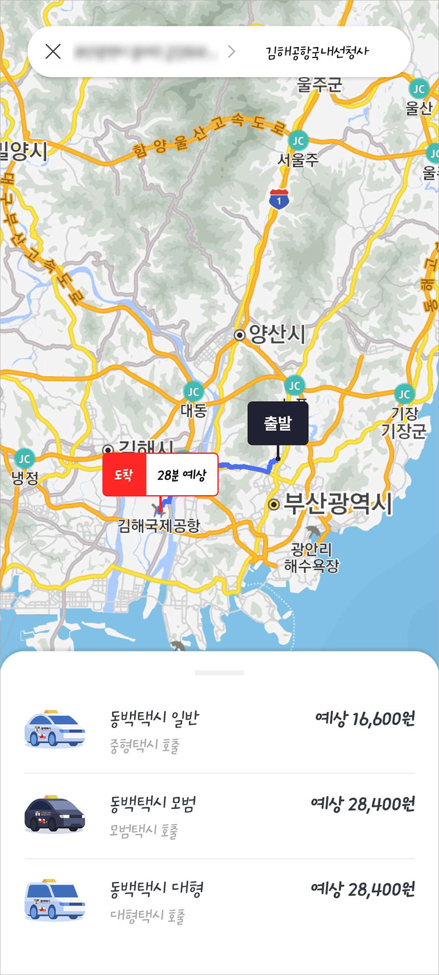 이날은 김해공항에서 비행기를 타야 했는데 준비가 늦어져서 서둘렀어요호출 후 배차도 생각보다 빨리 이루어졌고, 운전 기사가 오시는 경로도 자세히 안내되었습니다.