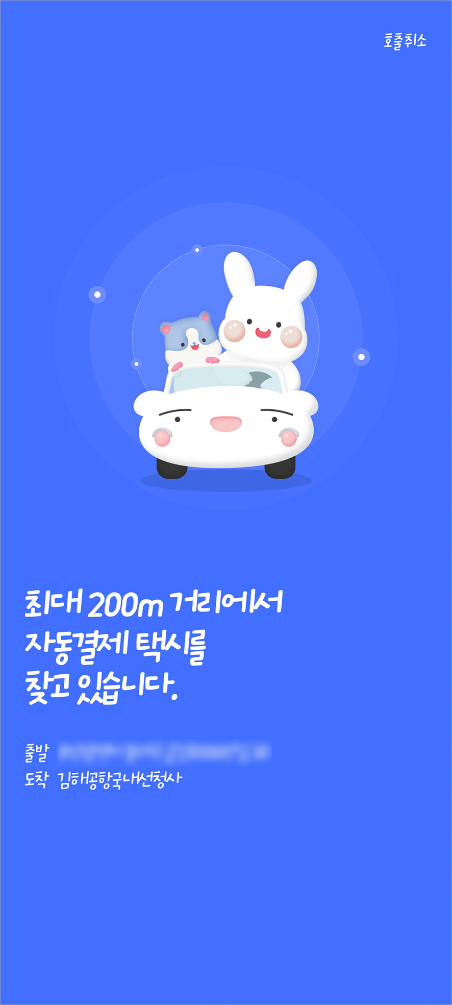 다른 부산 콜택시 앱처럼 출발지/목적지 선택 및 이용금액 확인 후 자동결제 택시호출 버튼을 누르시면 됩니다.차종에 따라 차이가 있는 이용 금액도 사전에 확인할 수 있어 편리합니다.