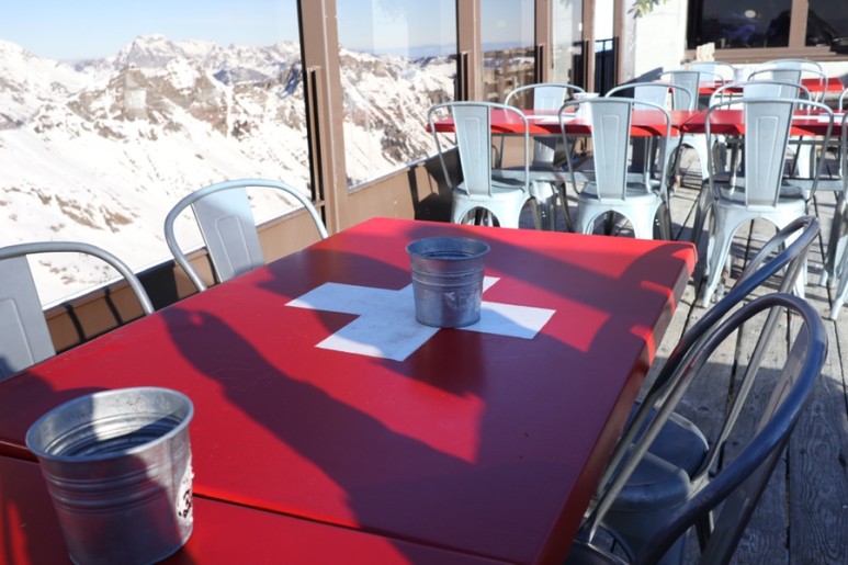 통유리로 되어 있어 레스토랑에서 스위스의 설산 뷰를 만끽할 수 있었다.