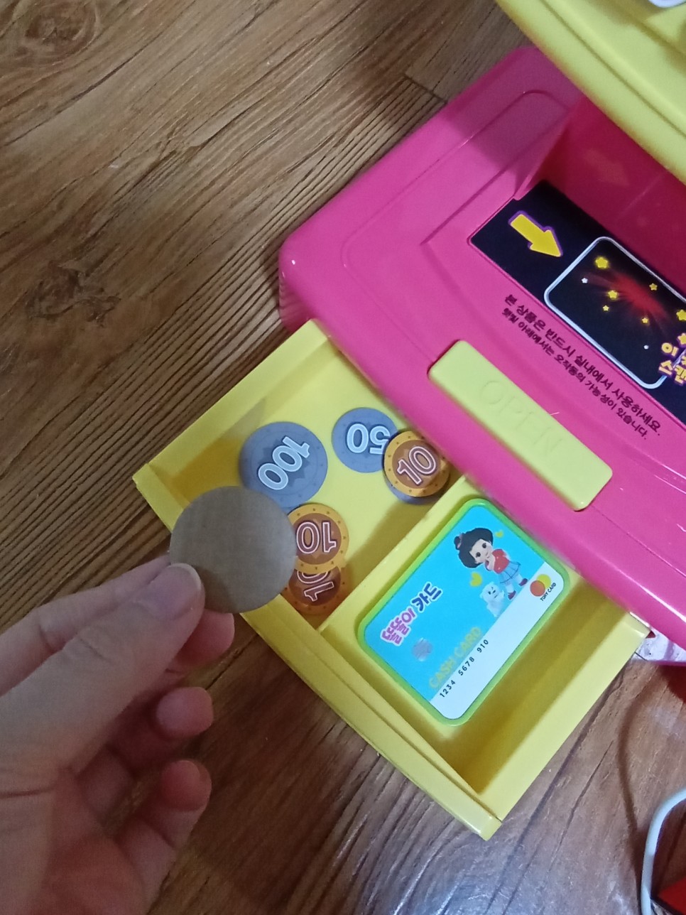 근데 계산대 장난감인데 돈이 없네.