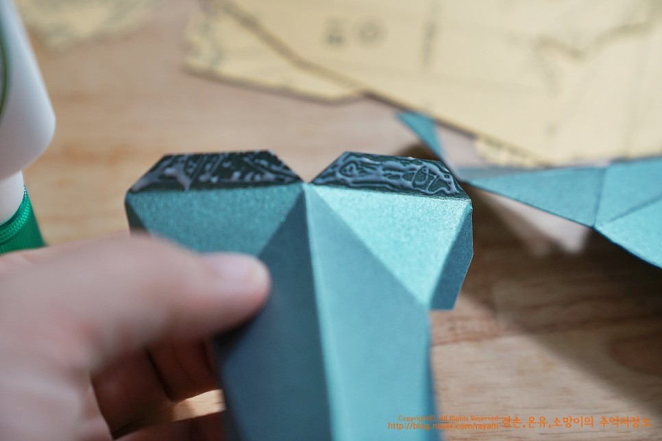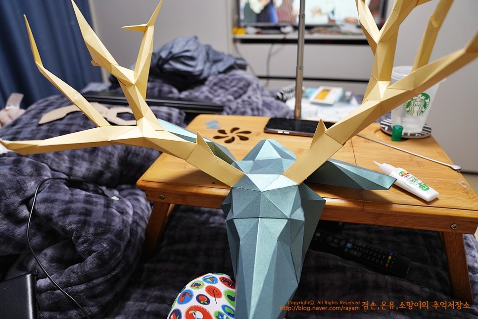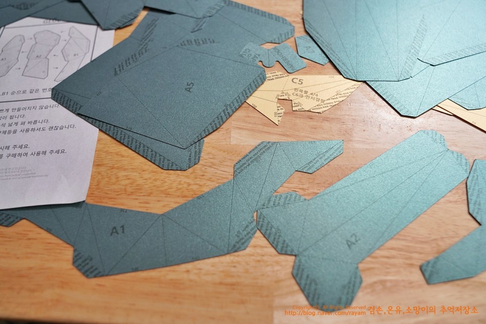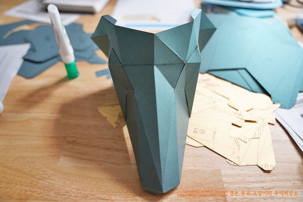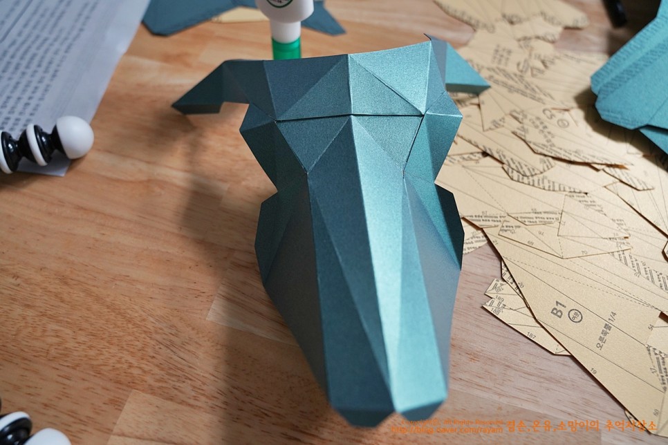 뿔을 만들 거예요. 얼굴은 완성이 되고... 얼굴이 A파츠고 B파츠고 순서도 B1, B2, B3... 이렇게 순서대로 잘라주시면 돼요.뿔을 만들때는 순간접착제를 쓰면서 한다고 했는데.. 저는 그냥 목공풀장으로 했습니다. 후후후