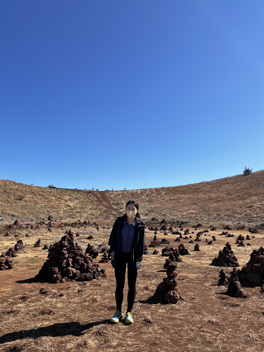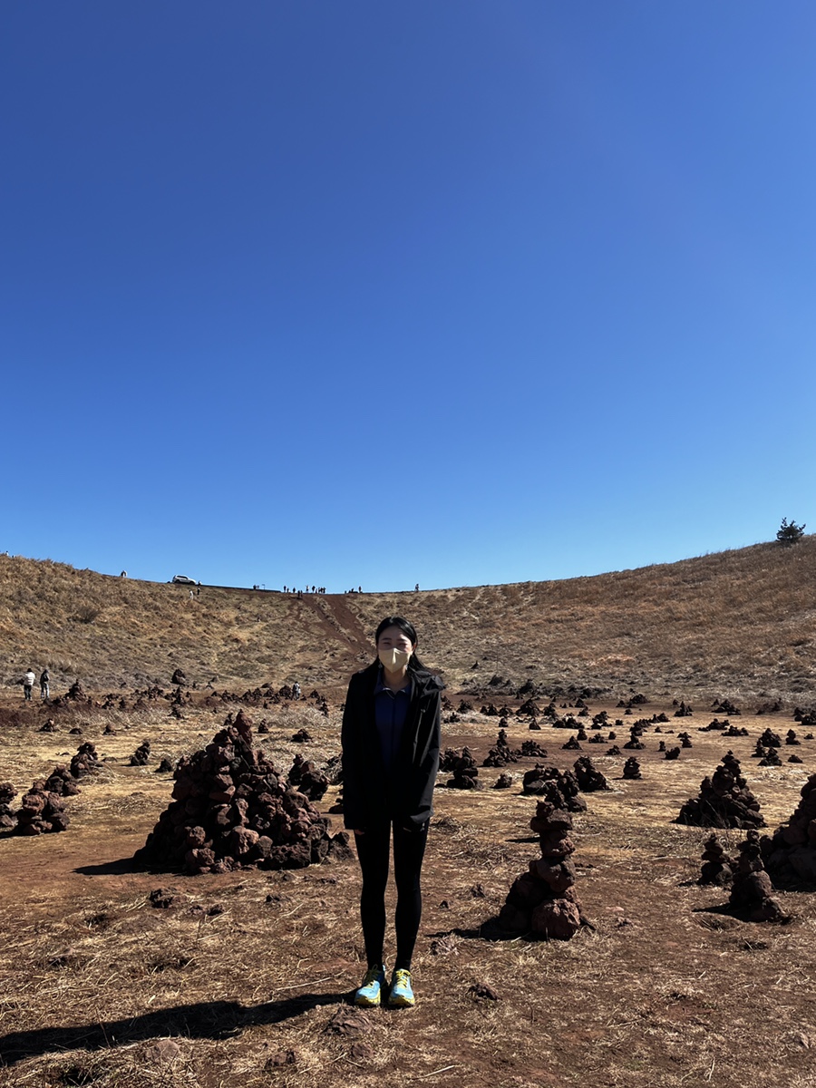 한라산이랑 올라가서 보이는 뷰에서 사진 한 장 남기고