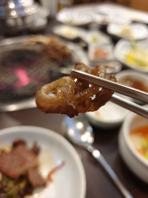 "한우쇠고기찌개 8,000원, 갈비탕 20,000원, 한우육회비빔밥 18,000원, 한우육개장 12,000원 등 식사메뉴도 알차게 준비되어 있습니다" 육회 한 접시에 갈비 2인분을 주문했는데, 이날의 주종은 소주와 맥주, 술은 참이슬과 카스입니다. 한우육회 육회 마니아라!!꼭 영천 연화 청담점의 육회를 먹어 봐야 합니다.청참시, 이영자가 한우 육회비빔밥을 먹고 반한 이 집~♡ 육회와 갈비만으로 성공한 영천영화식당이기에 더욱 그렇습니다. 화력맨빵~! 참숯이 들어오고 곧 갈비가 등장합니다 영천영화갈비 2인분 이 비주얼이 영천영화 갈비살의 퀄리티입니다 봉갈비, 참갈비, 꽃갈비... 명확하게는 알 수 없지만, 하네 위의 고기와 비슷할 정도의 마블링이 자랑입니다. 갈비살... 나뭇결 보이시나요?식감이 최고인 것 같아 얘~♡ 소주 한 잔에 갈비 한 점입니다~! 후후 여기는 강남이니 아껴드셔야 합니다.ㅋㅋ 영화식당의 특제 양념에 찍어 먹으면 짭짤한 맛이 일품이다. 함께한 K님 ! 정말 감탄을 금치못하고 먹어주셨어요 ~ ♡ 카린토 쌈은 즐겨먹던 맛이라서 ... ㅎㅎ 영천 연화식당의 장점 중 하나는 퀄리티에서 고객님을 선택하지 않는다는 점이지만, 누가 주문해도 만족스러운 수준의 소고기를 맛볼 수 있습니다. 술이 들어 부쩍 부쩍~♡ 영천 영화만의 시그너처 진미 메뉴"맥"가 나왔습니다.메뉴에 없는 메뉴!단골이 되면 먹을 수 있는 특급 진미 메뉴입니다. 한우 고급 영천 연화 청담점