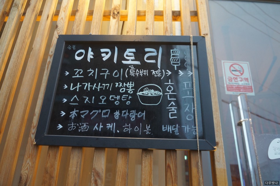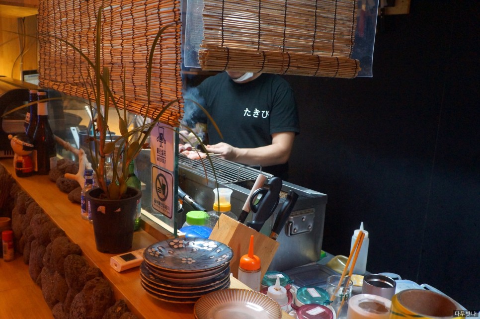 위치는 중문우체국 바로 위에 있는데, 다른 사람인 나도 쉽게 찾을 수 있는 위치에 있다. 센돈가의 중문 본점에서 부랴부랴 걸어갔다.이곳이 야키토리 폭포비 입구로 한번 가보자. 혼술도 가능하고 포장 및 배달도 가능해 인근 주민이나 숙박업소가 가까운 곳에서라면 쉽게 접할 수 있다. 내부