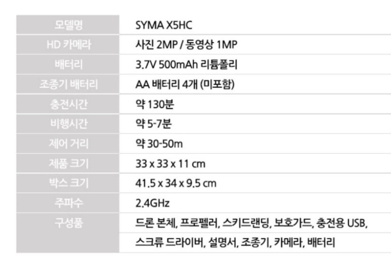 사양은 아래와 같습니다. 드론 비행 가능 시간이 최대 7분 정도 있는 것 같아서 배터리 패키지를 같이 구입했는데 7만3천원 되더라고요 이번에는 국내에서 산 걸로 이름이 있는 드론이니까 괜찮은 드론 자주 오겠죠? 드론이 오면 다시 글 올릴게요.