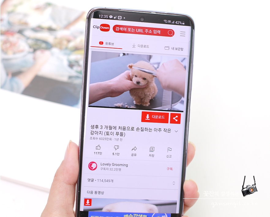 스마트폰에 앱을 설치하여 앱을 실행하면 친숙한 PC 버전과 비슷한 화면이 나옵니다. PC 와 같이 컨텐츠 공유 주소를 입력하거나 영상의 오른쪽 하단에 있는 붉은 화살표 아이콘을 클릭하면, Youtube 영상을 보존할 수 있습니다. PC보다 스마트폰을 더 자주 활용하시는 분은 이렇게 스마트폰에 저장해 두세요. 다운로드한 영상은, 앱내의 「다운로드」탭에서 찾을 수 있습니다. 이상으로 유튜브 동영상 다운로드, 음원 추출까지 가능한 클립다운 사이트 활용법에 대해 알아보았는데요. 그 외에도 유튜브 Premium 가입 없이도 광고 없이 영상을 보실 수 있으며, 8K 영상도 손쉽게 다운 받으실 수 있어 저작권 문제가 없는 동영상의 경우 2차 가공으로 다른 영상을 만드는데 활용할 수 있다는 점도 장점이니 활용해주세요!