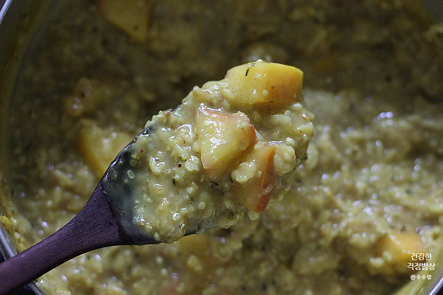 오늘 이용하실 오트밀은 롤드오트입니다.눌러놓은 보리쌀처럼 생겼어요.일반적으로 맥아의 압맥도 이와 같은 형태를 띠고 있습니다.옛날 어머니들은 보리쌀을 먹으려고 하면 소화가 잘 안 되기 때문에 미리 땅에서 한 번 삶은 후 밥을 지을 때마다 보리를 넣어 다시 밥을 짓는 이중 방식으로 보리쌀을 먹었습니다.거기서 나온 게 오리맥이에요.오트밀도 귀리를 쪄서 누른 상태입니다.귀리의 효능은 당연히 같으며, 여기에 소화력을 하나 더 추가하게 된 것입니다. 평소에 강황과 생강 가루를 많이 쓰는데 매일 문숙에서도 강황과 생강 가루를 넣고 죽을 끓였습니다.강황은 당연히 면역력이 있기 때문에 먹고 있습니다생강과 강황 특유의 향기도 가지고 있으며, 몸을 열로 만들어 면역을 키워주는 역할이 있습니다.생강가루나 강황가루는 항상 준비해서 다양한 요리에 활용하면 아주 좋습니다. 물을 넣고 끓입니다.예전에는 짧은 시간에 조리가 끝나지만 이번에는 물을 조금씩 보충하면서(최소 5~6회 보충) 죽이나 리조또처럼 부드럽게 끓여줍니다.그래야 소화가 잘 된대요.이미 스팀처리로 구워 누른 압착귀지만 오트밀 역시 내용물이 예민하신 분들은 이러한 조리과정을 통해 다시 한번 부드럽게 만들어 드시는 것이 좋습니다. 부재료로 쓰는 바나나, 넥타린 그리고 햄프씨드입니다햄프시드는 오늘 견과류 대신 사용했는데 곡물입니다.그것도 단백질이 풍부한 곡물.햄프시드는 따로 포스팅에서 자세히 소개할게요.오늘은 고소한 맛 때문에 견과류 대신 활용해요. 바나나, 넥타린도 넣었어요과일을 조금 좋아해요.본인이 좋아하는 견과류를 넣으셔도 됩니다.매일 문숙에서 사과, 바나나, 자두 넣었는데 개취에 따라 넣으면 좋을 것 같아요.저는 바나나, 넥타린 그리고 햄프씨드를 넣고 끓여줬어요.소금은 소금으로만... 완성이에요 좀 딱딱해 보여요저는 그 정도 농도를 좋아해요.하루하루 문숙에서는 저 정도의 농도에 아몬드 밀크를 추가하여 드실 수 있습니다.물을 붓고 졸이는 과정에서 아몬드 우유나 두유 등 식물성 우유를 더해도 좋습니다.저는 아몬드 밀크 빼고 그냥 가볍게 먹으려고요.하지만 식감은 오래 끓이는 것보다 걸쭉하게 오트밀을 씹는 것이 좋습니다.리조또처럼 녹진으로 끓여먹을 겁니다 좀 덜 익은 바나나를 넣어도 달콤해졌어요바나나의 달콤함과 넥타린의 달콤함이 왔다갔다 하면서 매력적인 맛을 느낄 수 있습니다.강황과 생강은 별로 느낌이 없어요.그래서 아이들도 잘 먹습니다. 간헐적 단식을 마친 후 항상 첫 끼가 고민이었죠시간이 애매했거든요저는 보통 오전 11시에서 12시 사이에 단속적인 단식을 마치고 한 끼를 먹는데 이 시간이 제일 바빠요.그래서 자기가 못 먹는 날이 많아요.배고픔 때문에 빨리 먹고 싶은데 적당한 것이 없기 때문에 탄수화물 위주로 때려서 먹는 경우가 많아서 이게 무슨 간헐적 단식으로 효과가 있을까... 후회스러웠습니다. 이제 간헐적 단식을 마치고 먹는 매일 첫 끼를 공개하려고 합니다건강하든 인스턴트든 블로그에 올리면 내가 뭘 먹고 있는지 인지하게 되고 반성하게 되지 않을까 싶어요.